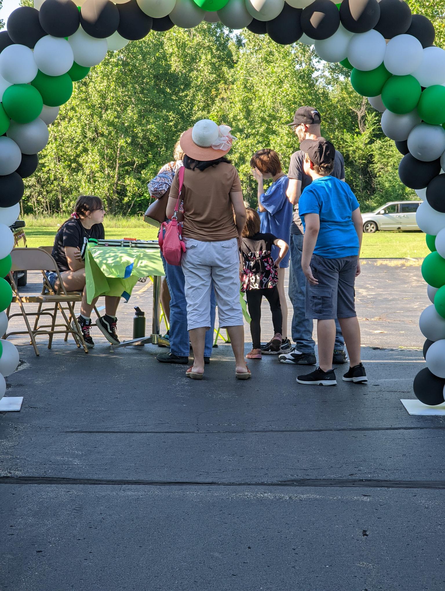Upon entering our parking lot, matches and their families entered through a colorful balloon arch. Slappy from the Kalamazoo Wings, Alice in Wonderland from A Moment of Magic, DJ Chris, and BBBS staff were there to wish them luck as they prepare for the school year. KD Sales‘ balloon décor was the perfect touch to welcome our families to the festivities.